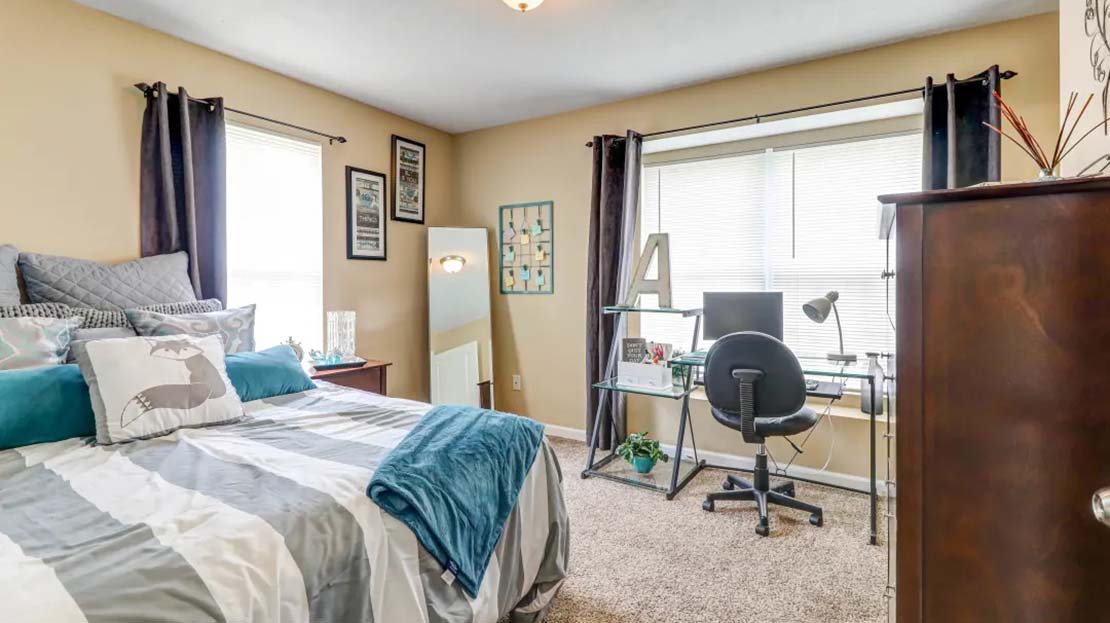 Discover your new life at 900 on Park Apartments, in Carbondale, IL, located just minutes from Southern Illinois University. Our community offers spacious, fully furnished apartments with private bathrooms for each bedroom, walk-in closets, and large balconies or patios with private storage. Each apartment features modern appliances, including washers & dryers, self-cleaning ovens, and full-size refrigerators with in-door ice makers. Stay connected with high-speed internet access and enjoy the comfort of air conditioning throughout your home.
