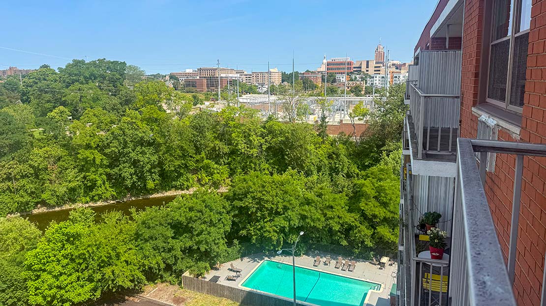 Welcome home to Fountain Place Apartments where you will find the perfect blend of city living with local conveniences. Enjoy the comfort of spacious studios, one and two bedroom apartment homes that offer modern looks, breathtaking views and convenient features. Sit back and relax on your private balcony, take a walk down the beautiful river trail or take a swim in our crystal blue pool. Fountain Place has everything you’re looking for and so much more.